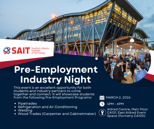 Mark your calendars! The 2026 Mechanical Engineering Technology (MET) SHOWCASE, details below: Date: Wednesday Thursday, April 16th, 2026 Time: Open event from 2:00pm – 7:30pm Location: SAIT Main Campus, Aldred Centre, CA121 Food: More information to follow